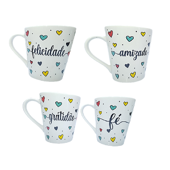 CANECA TULIPA 290ML - FAMILIA/FÉ/GRATIDÃO/PAZ/AMOR