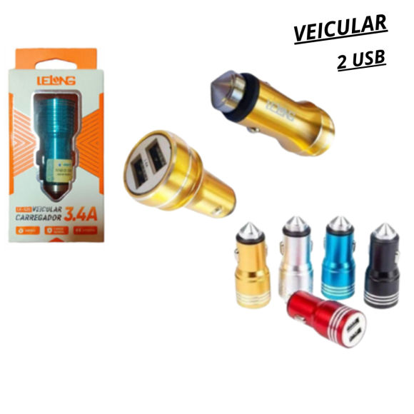 CARREGADOR VEICULAR PLUG 3.4A - LE-525