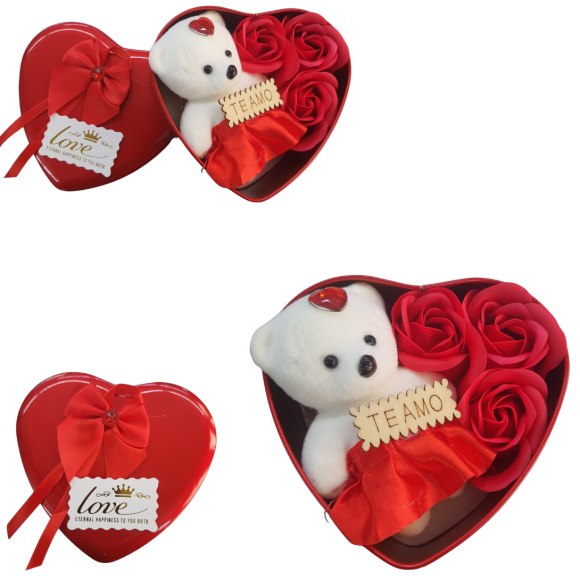 CORAÇÃO C/3 BOTÕES DE ROSAS E URSINHO - FL5020