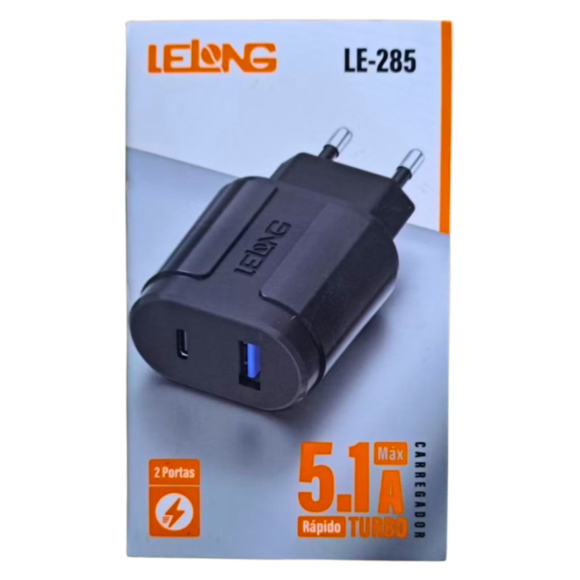 CARREGADOR 5.1A USB E TIPO C - LE-285