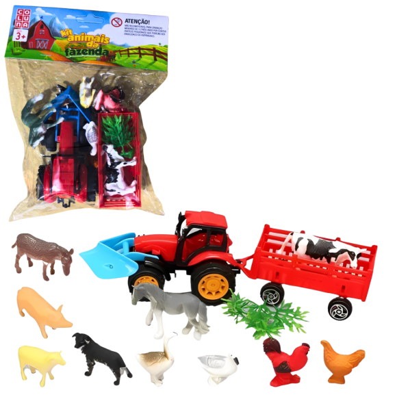 ANIMAIS DA FAZENDA C/TRATOR C/12 PÇS - 791813